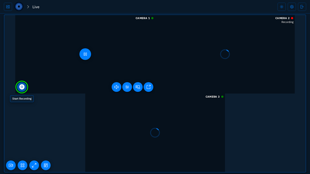To start a manual recording from the web interface, go to the Live View page and click the Start Recording button in the camera controls.